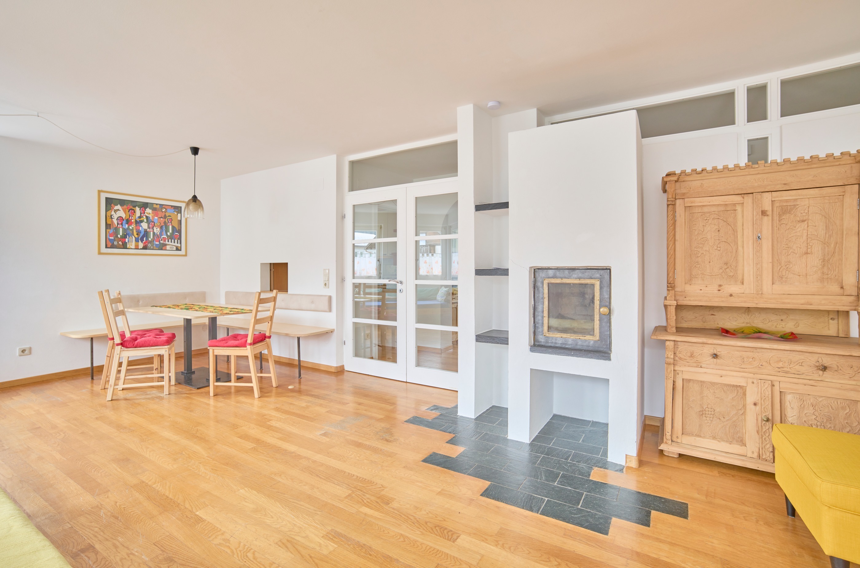 Heimelige Erdgeschosswohnung mit großzügigem, privaten Garten (70 m2), in dem Haustiere herumtollen und Kinder sicher spielen können. Sie verfügt über zwei Schlafzimmer (eines mit Doppelbett, das andere mit Etagenbett und Einzelbett), eine geräumige, voll ausgestattete Küche, ein gemütliches Wohnzimmer mit Sofa und TV, einen Vorraum mit Kleiderschrank, ein Badezimmer mit Badewanne/Dusche und ein Tages-WC. Zur Ausstattung gehören kostenloses WLAN, Geschirrspülmaschine und Waschmaschine, Bügeleisen, ein Föhn, Pflegeprodukte und vieles mehr.
