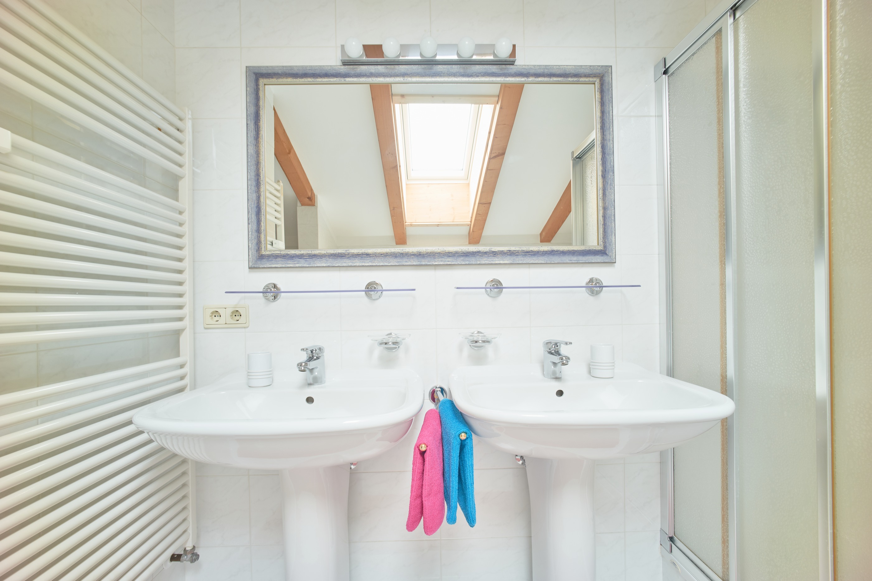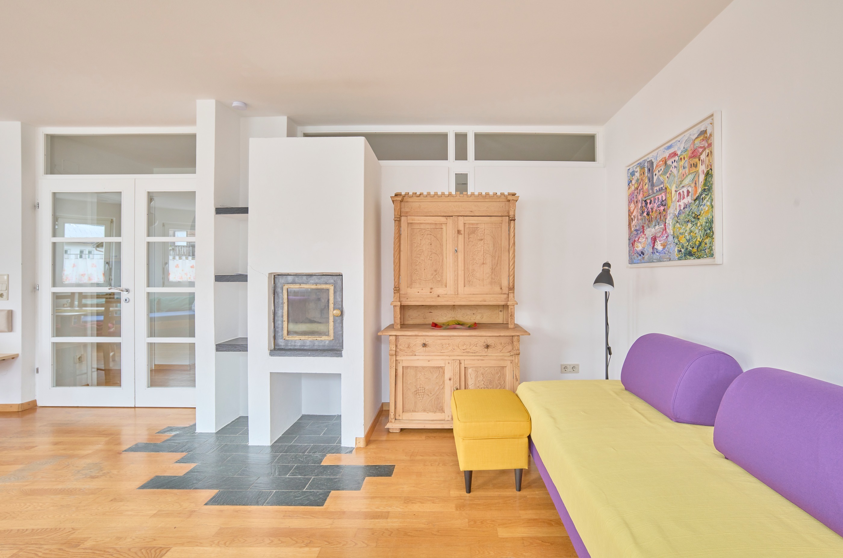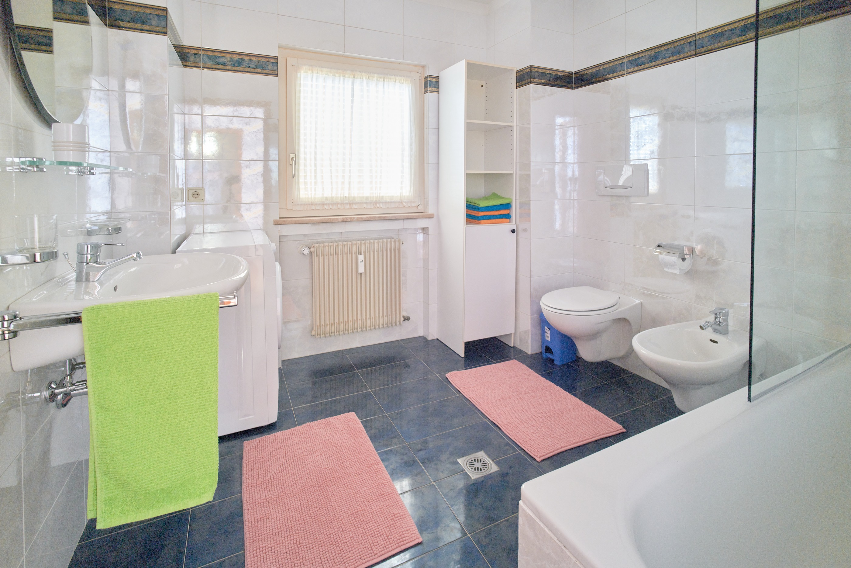 Lichtdurchflutetes Apartment nach Südwesten, das sich auf zwei Etagen erstreckt und über zwei Balkone verfügt. Es bietet zwei Schlafzimmer: ein Schlafzimmer mit Doppelbett, ein Schlafzimmer mit Doppel- und Einzelbett und ein Schlafzimmer mit partieller Trennwand zwischen Doppelbett und Schlafsofa. Neben einer gut ausgestatten Küche mit Geschirrspülmaschine und einem Backofen wartet im Untergeschoss auch ein geräumiges Wohnzimmer mit drei bequemen Schlafsofas, einem einladenden Essbereich und einer Holzkiste mit Brettspielen. Zwei Badezimmer sorgen für ein entspanntes Urlauben: das Badezimmer im ersten Stock besticht mit WC, Bidet, Waschbecken und Badewanne, das Badezimmer im Obergeschoss mit zwei Waschbecken, WC, Bidet, Dusche, Badewanne und Waschmaschine. Freuen Sie sich zudem auf Pflegeprodukte, Föhn, Bügeleisen und kostenloses WLAN.
